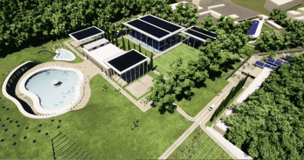 Il centro comprende 4 campi da padel coperti e climatizzati con pareti removibili che ne consentono l’utilizzo tutto l’anno, 3 campi da beach volley di cui due coperti, climatizzati e con sabbia riscaldata, 1 campo da calcetto, una struttura sportiva polivalente di 800 mq ca, una piscina di 1200 mq, oltre a un teatro per ospitare eventi all’aperto e un lounge-bistrot